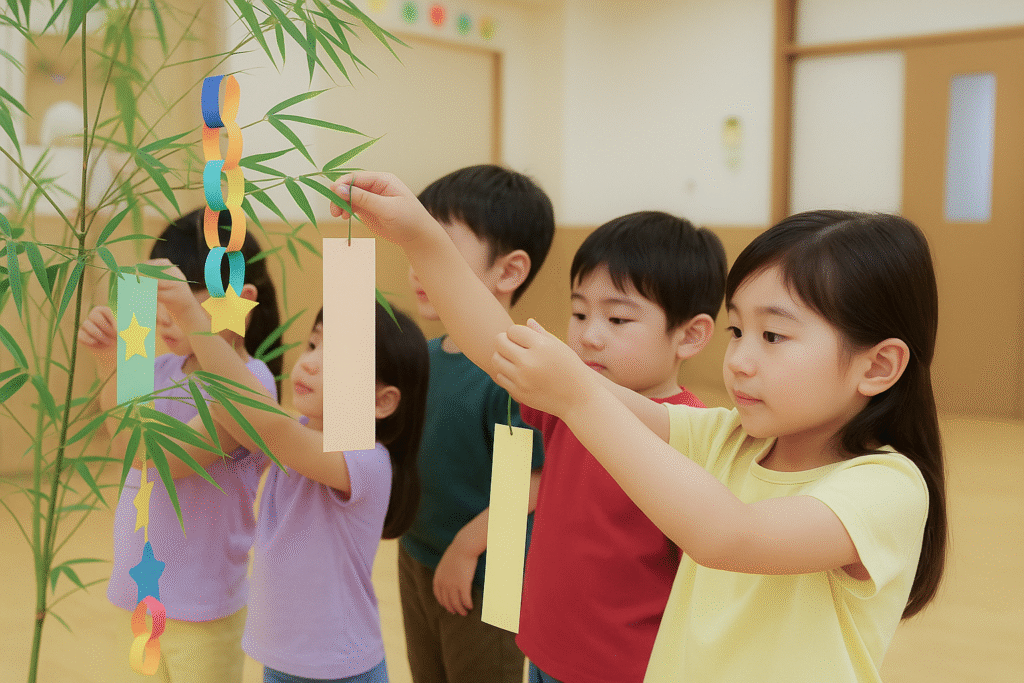 七夕に向けて、子どもたちが短冊にそれぞれの願いごとを書き、笹に飾りました。「プリンセスになりたい」「パパと公園にいきたい」「アイスをたくさん食べたい」など、子どもらしいかわいらしい願いがいっぱいで、読みながら思わず笑顔になりました。クレ...